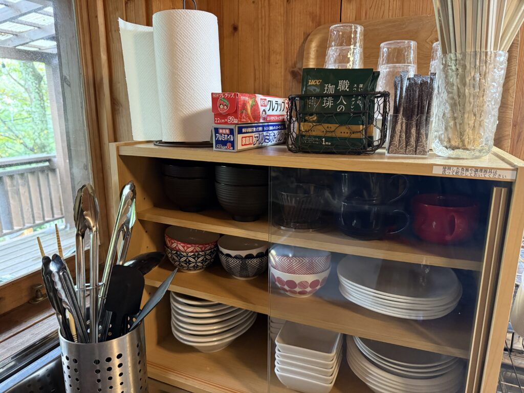 | 設備 | バスルーム、洗浄機付トイレ(各階)、キッチン(IHクッキングヒーター、冷蔵庫、電子レンジ、炊飯器、湯沸かし器、トースター)、エアコン(リビング、2階ベッドルーム)、洗濯機、音楽スピーカー、ダーツ台、wi-fi、空気清浄機、扇風機(夏季)、灯油ストーブ(冬季)、BBQ設備、たき火台 →BBQ、たき火について |